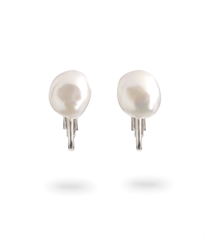 Pearl Puddles™ ClipThe renewed classic pearl stud earring. These white 9mm freshwater baroque pearl earrings are paired by shape and color; each pearl is slightly different. Mounted on sterling silver lever back "soft" clips.