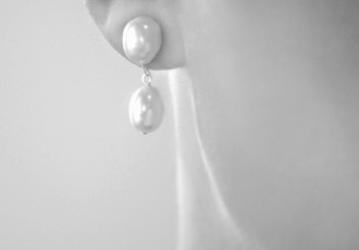 Double Pearl Puddle™ Earrings A baroque pearl dangles from our 9mm Pearl Puddle an added touch to our best seller. 14K yellow gold hardware. Length 1"